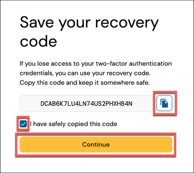 Your recovery code is important as it allows you to verify your account if you lose your 2FA credentials or your 2FA phone. Please copy the code and store it somewhere safe.