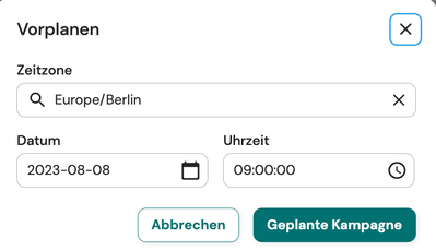 - Wähle das Datum und die Uhrzeit, zu der die Kampagne gesendet werden soll.