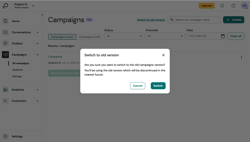 Once you click the button, a popup will appear, notifying you that the old version will soon be phased out.