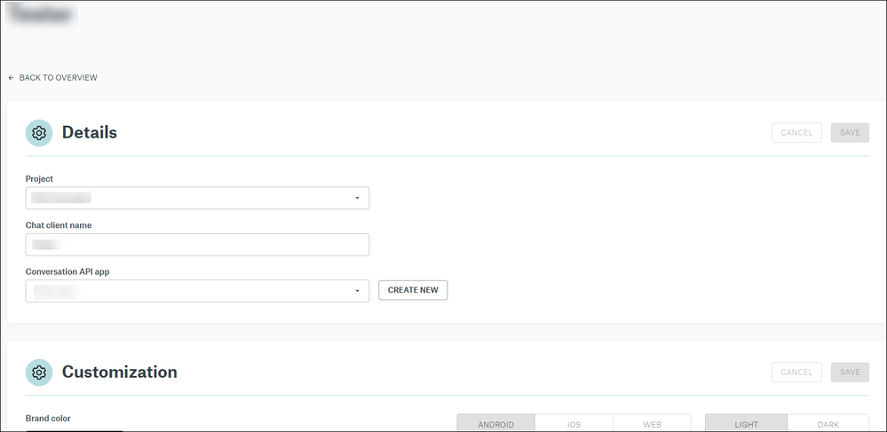 - To preview how the client will appear in iOS apps, Android apps, and on web pages, use the ANDROID, IOS, and WEB tabs. The preview image will update based on your selection.