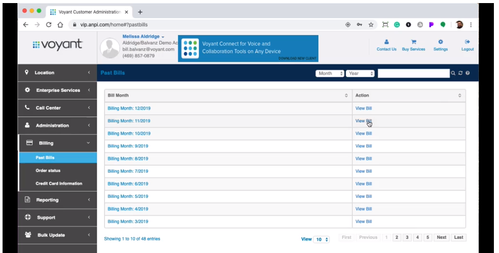 Customers have access to view their current invoice or a previous invoice from months' prior within the Customer Administration Portal.