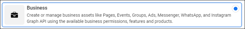 - Complete the corresponding process. When selecting a type, select the Business type. Note that you may have to select Other prior to selecting Business.